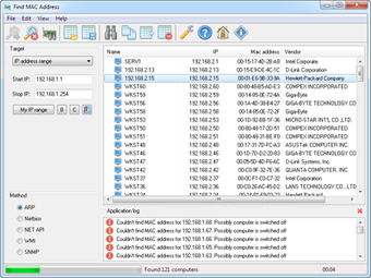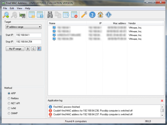 Find MAC Address es una completa aplicación que te permite localizar todas las direcciones MAC de una red. Para hacerlo, Find MAC Address sólo necesita saber el rango de IP en el que buscar, ya se trate de una red local o una red remota.